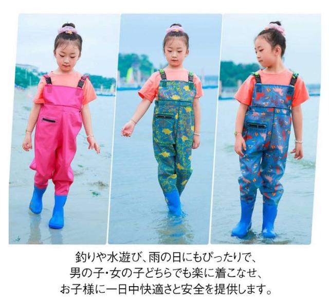 | 川遊びや砂場遊びにも最適な子供用ウェーダー。 防水性に優れた胴付き長靴仕様で、水辺の遊びや雨の日のアウトドア活動に最適。 靴底には耐摩耗性の高い厚めのソールを採用し、滑りにくく安定感抜群。水中の硬い石やぬかるみでも安心して遊べる設計です。 オーバーオールデザインは雨水や泥が入るのを防ぎ、着脱も簡単で快適に動けます。 前面にはファスナー付きのポケットを搭載。おもちゃや小物を収納できるため、遊びの際に非常に便利。 釣りや水遊び、雨の日にもぴったりで、男の子・女の子どちらでも楽に着こなせ、お子様に一日中快適さと安全を提供します。 | |
