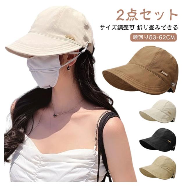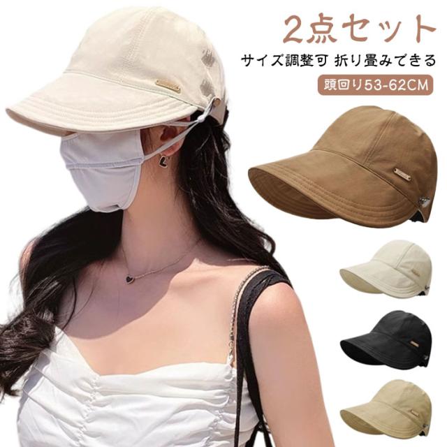 キャスケット キャップ 帽子 2点セット 春夏 折りたたみ 深め つば広 夏 ハット 日よけ 遮光 日除け帽子 小顔効果 通学 春 サイズ調節 完全遮光 UVカット 日焼け防止 無地 かわいい おしゃれ 韓国 通勤 2点セット 旅行 散歩 お出かけ 通気性 速乾 涼しい