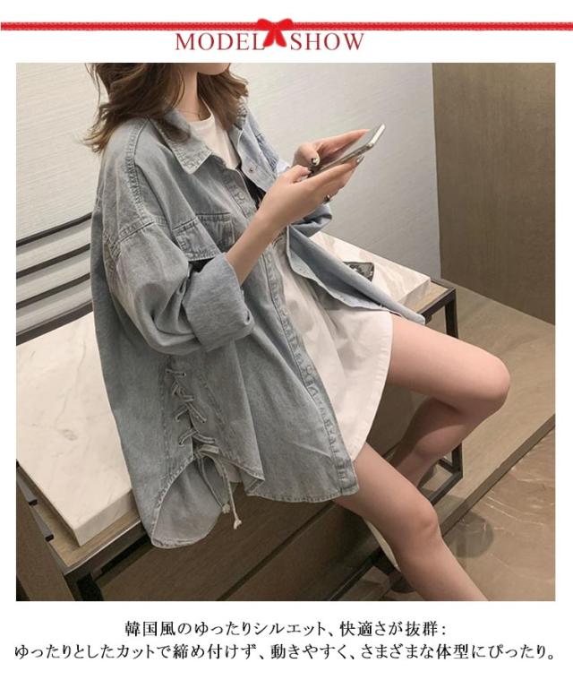 サイド編み上げ デイムシャツ デイムシャツ デニム トップス ライトアウター 春 シャツ ブラウス 長袖 秋 ゆったり おしゃれ