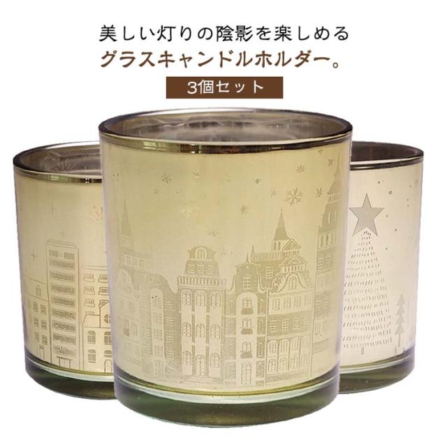 アロマキャンドル キャンドルハウス 3個セット 美しい灯りの陰影を楽しめる ティーライトキャンドル ホルダー ホーム ガラス キャンドルホルダー ガラスホルダー 城 city ツリー キャンドルカップ パーティー 小道具