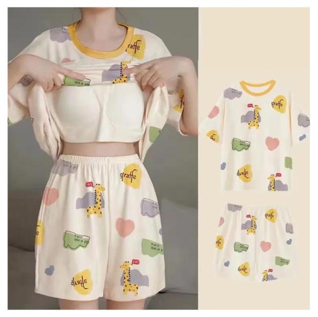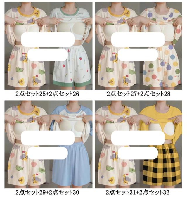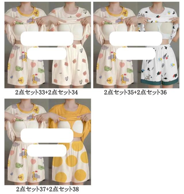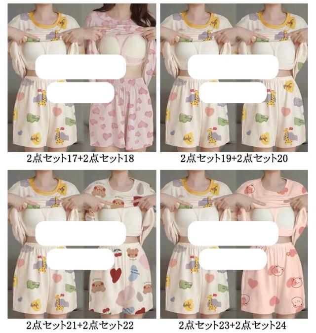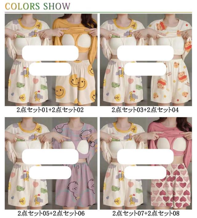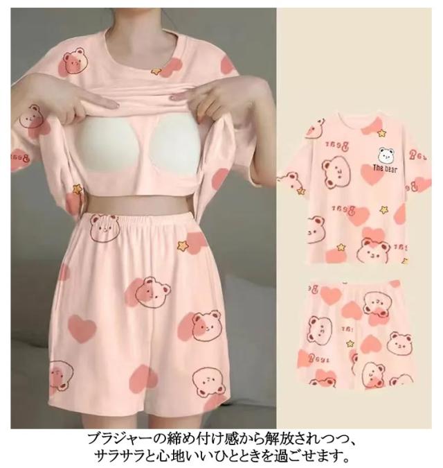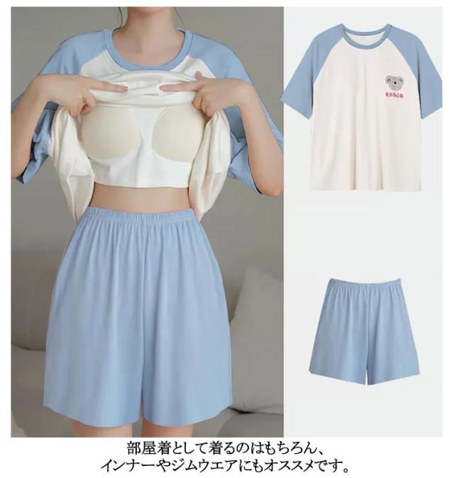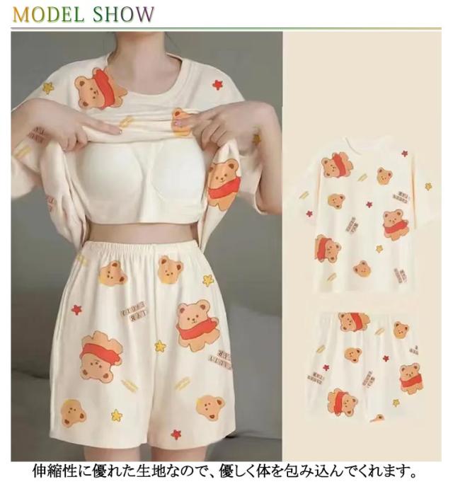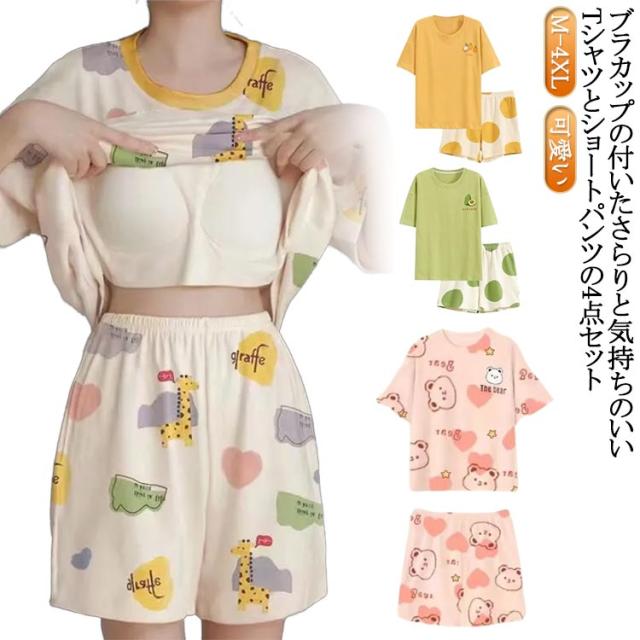 夏 4点セット カップ付き 半袖Tシャツ セットアップ パジャマ リラックス ショートパンツ 上下セット 春 韓国ファッション レディース ナイトウェア カジュアル 半袖 短パン 寝巻き ルームウェア 楽ちん 可愛い パジャマ 部屋着 春 春 夏 大きいサイズ
