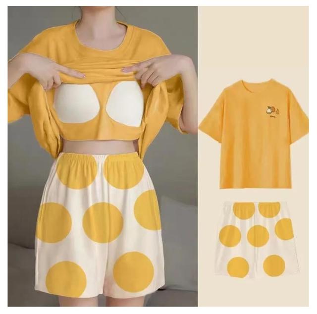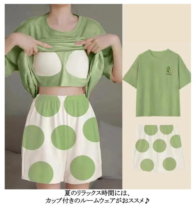 | ブラカップの付いたさらりと気持ちのいいTシャツとショートパンツの4点セット。 伸縮性に優れた生地なので、優しく体を包み込んでくれます。 ブラジャーの締め付け感から解放されつつ、サラサラと心地いいひとときを過ごせます。 部屋着として着るのはもちろん、インナーやジムウエアにもオススメです。 夏のリラックス時間には、カップ付きのルームウェアがおススメ♪ | |