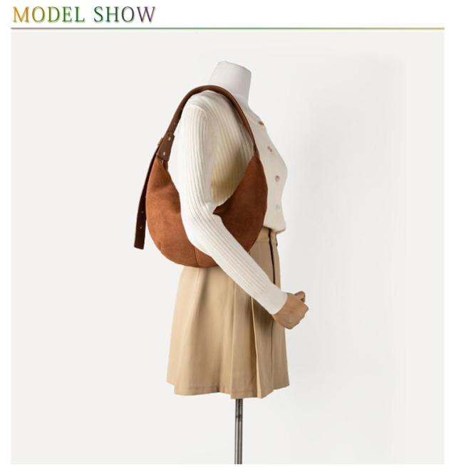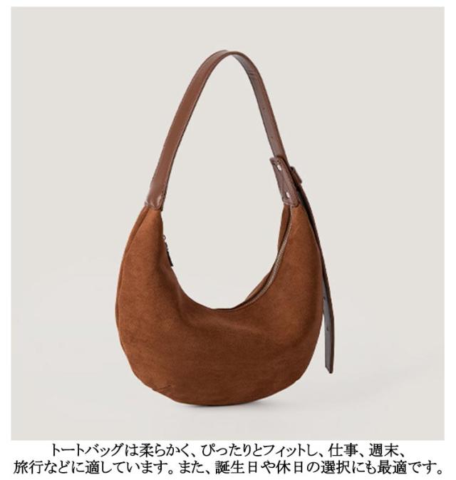 | ハーフムーンバッグ スエードバッグ。この女性用バッグは、三日月形のデザインが特徴で、柔らかく繊細な質感でモダンなスタイルと豪華さを醸し出しています。 携帯電話やコスメ、カードホルダーなどを楽々収納できるブラウンのトートバッグです。 トートバッグは柔らかく、ぴったりとフィットし、仕事、週末、旅行などに適しています。また、誕生日や休日の選択にも最適です。 | |