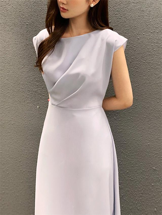 ワンピース レディース 春 きれいめ お呼ばれ おしゃれ 夏 パーティー ドレス 大人 黒 ブラック フレンチ袖 フレンチスリーブ 袖あり ミモレ丈 タレ感 無地 シンプル カジュアル 春夏 ゆったり 通勤 OL オフィス ビジネス 20代 30代 40代 dy040x1cyh5 dy040x1