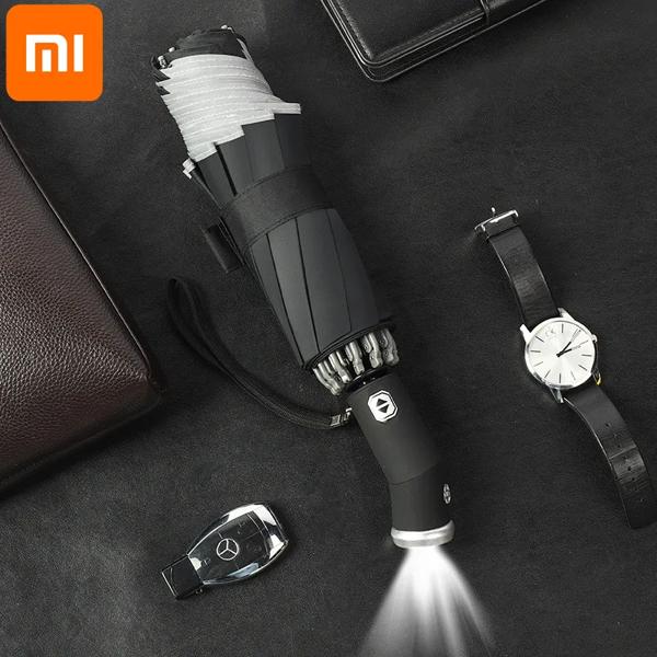 Xiaomi led自動回転傘反射ストライプリバースライト傘3折りたたみ反転10リブ防風