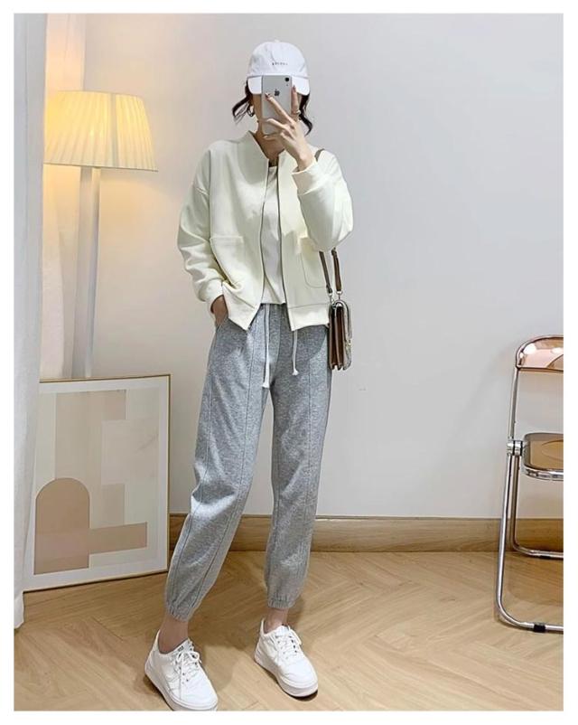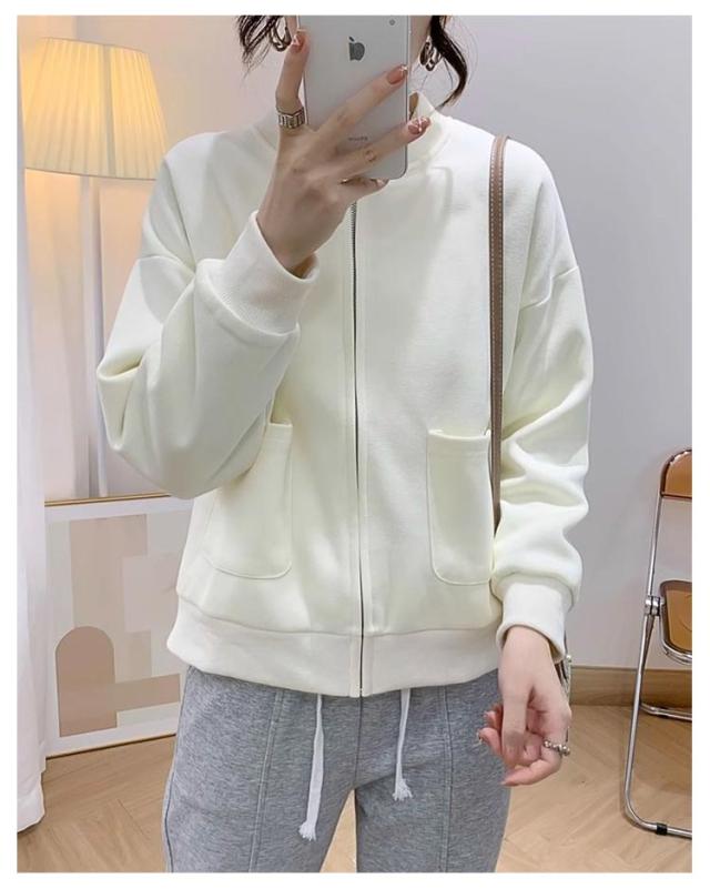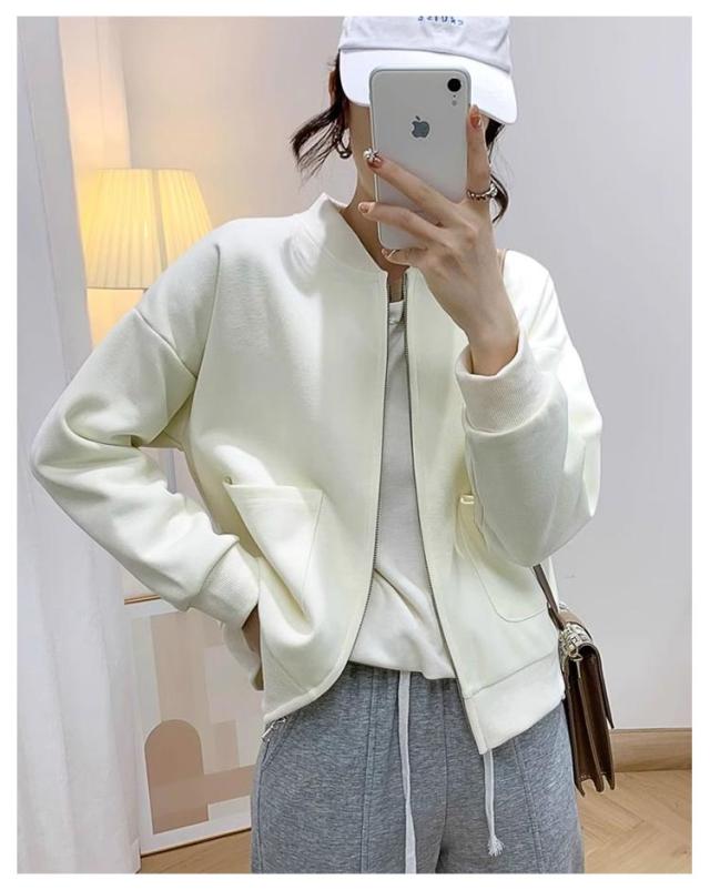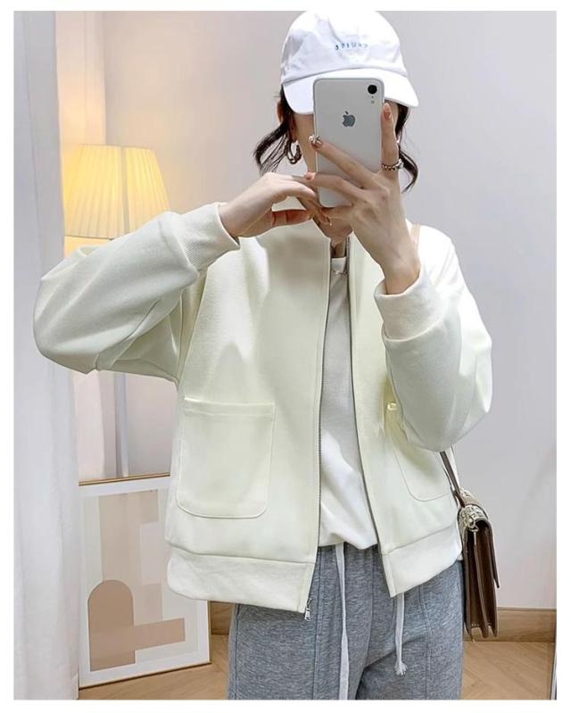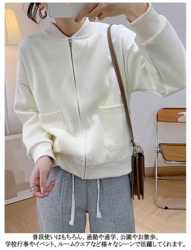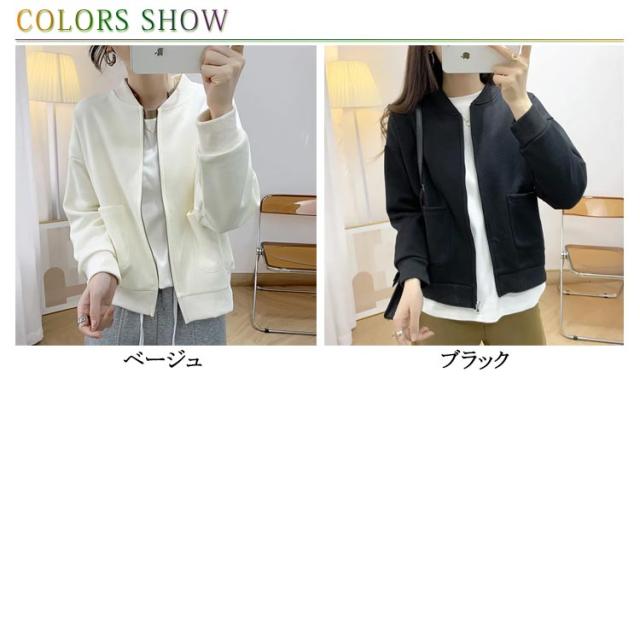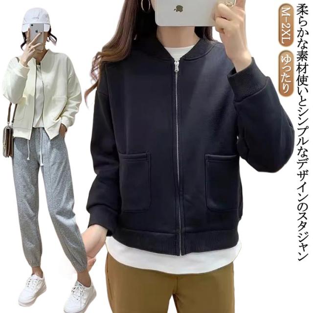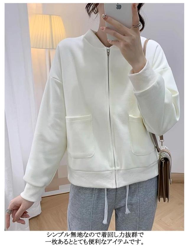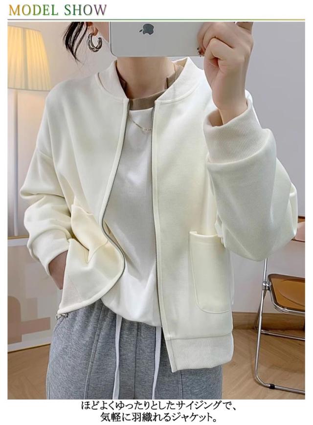 レディース 春 秋 ブルゾン カーディガン きれいめ 長袖 ジャケット アウター 前開きトップス ゆったり 丸首 クルーネック ジャンパー ノーカラー 柔らかい 羽織り ライトアウター トレーナー 無地 カーデ 軽量 カジュアル オフィス スウェットスタジャン 30代