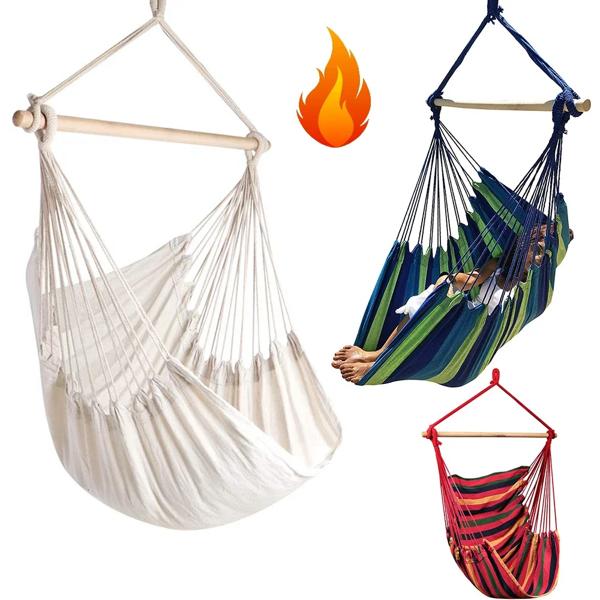 屋内と屋外のタッセル付きハンモック 白い綿のブランコチェア ベッドルーム ロマンチックなハンモック ビーチ 庭 パティオ