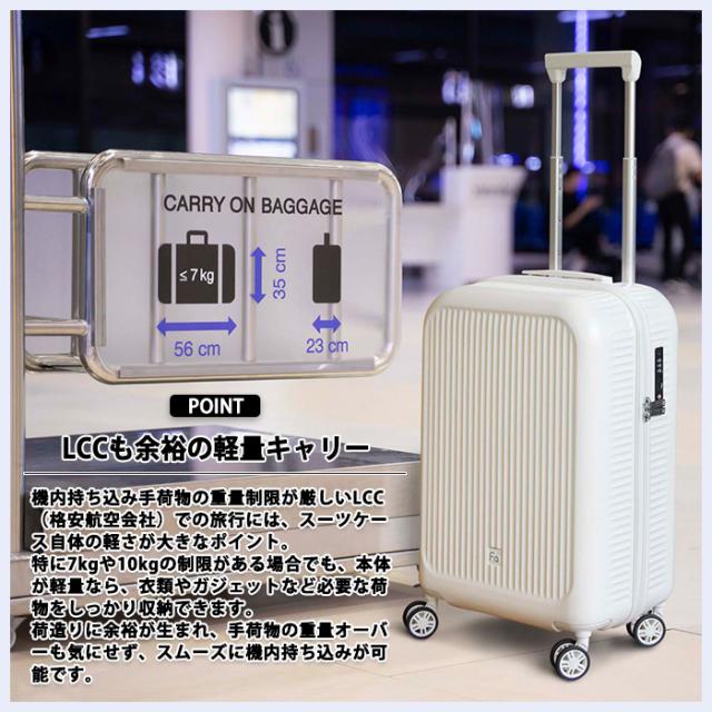 機内持ち込み手荷物に厳しい重量制限があるLCC(格安航空会社)でも大活躍。本体が軽いからこそ、衣類やPC、小物類も余裕を持って収納可能。7kg・10kg制限の航空会社でも、荷造りに余裕が生まれます。