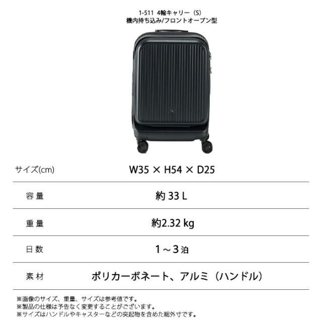 機内持込可 フリクエンター FREQUENTER アウラ AURA キャリーケース スーツケース 1-511 33L Sサイズ 2泊 3泊 フロントオープン ダブルキャスター TSAロック 軽量 ポリカーボネート