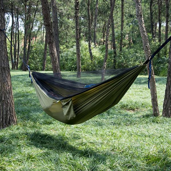 軽量ハンギングキャンプハンモック、モスキートネット、ツリーストラップ、スイングバックパック、裏庭ロッキングチェア、2.7x1.4m