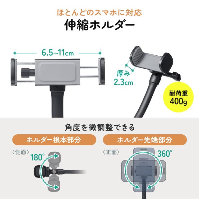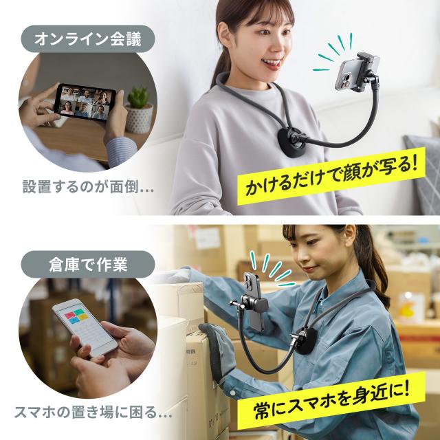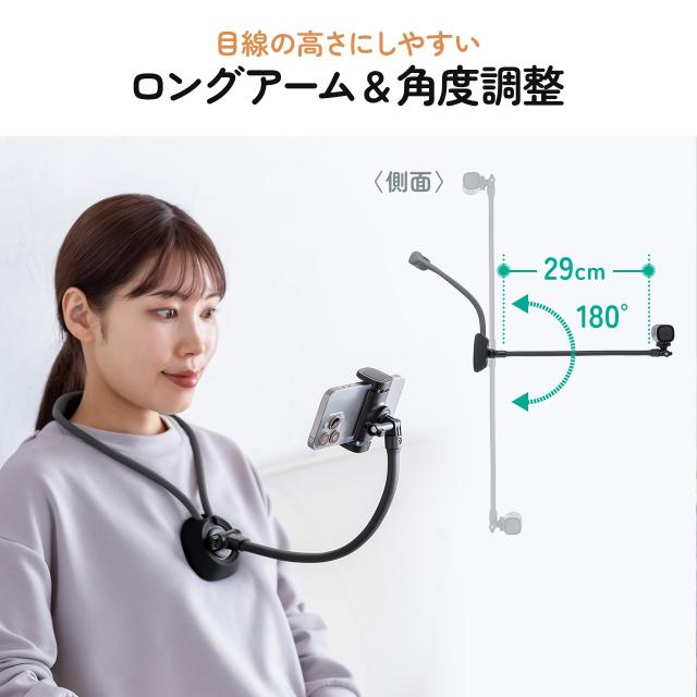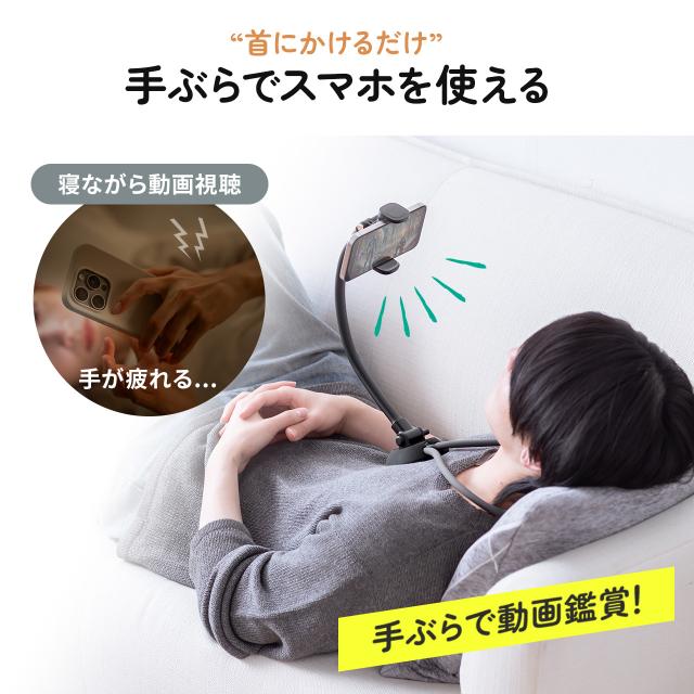 首掛け スマホホルダー 動画視聴 撮影 寝ながらアーム ハンズフリー 汎用ホルダー[200-DGCAM040]
