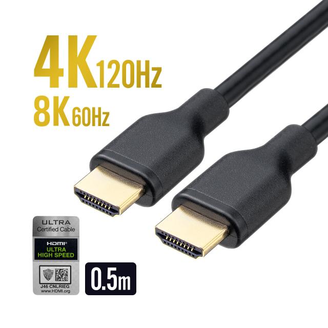 HDMIケーブル ウルトラハイスピード 4K/120Hz対応 PS5対応 0.5m 48Gbps対応 ゲームモードVRR対応 DynamicHDR eARC対応 8K/60Hz PS4対応 正規認証品[500-HD031-05]