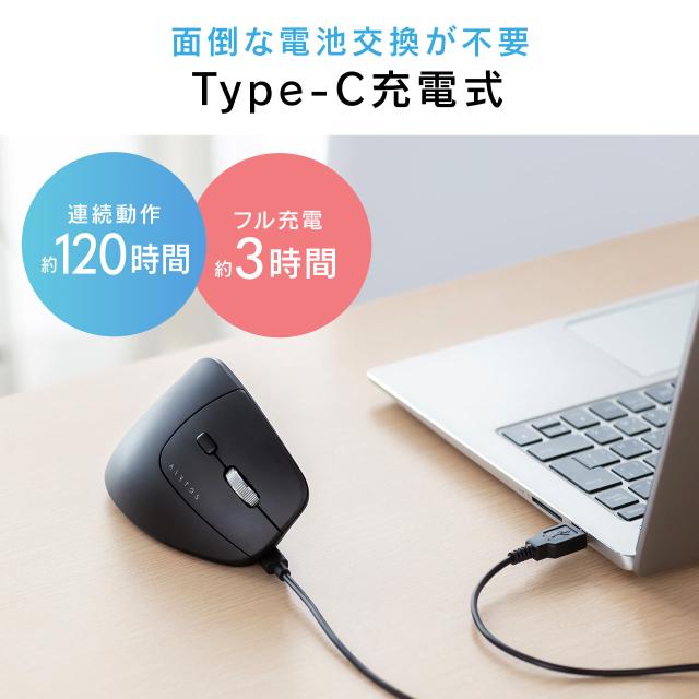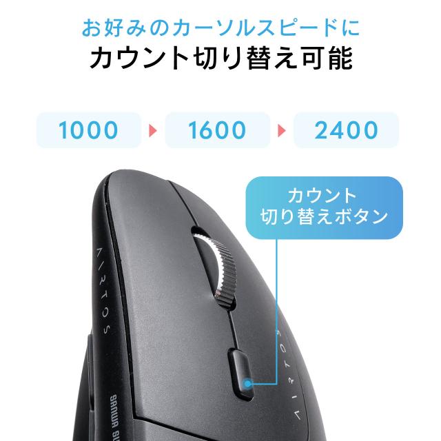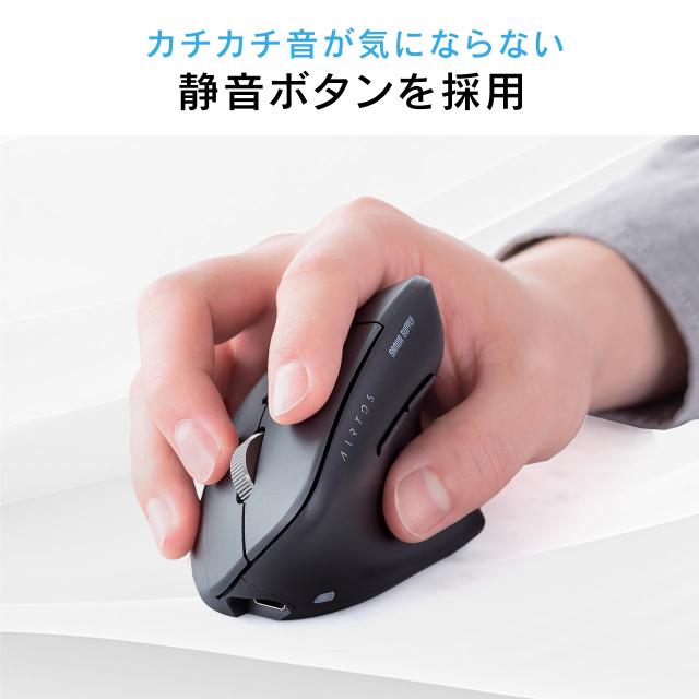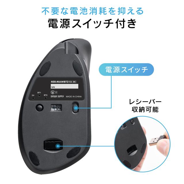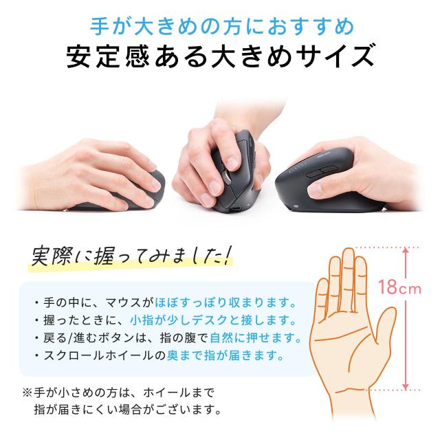 ワイヤレスマウス Bluetooth 軽量 大型 エルゴノミクス USB Aレシーバー 5ボタン マルチペアリング 静音 充電式 無線 2.4GHz ブラック[400-MAWBT215]