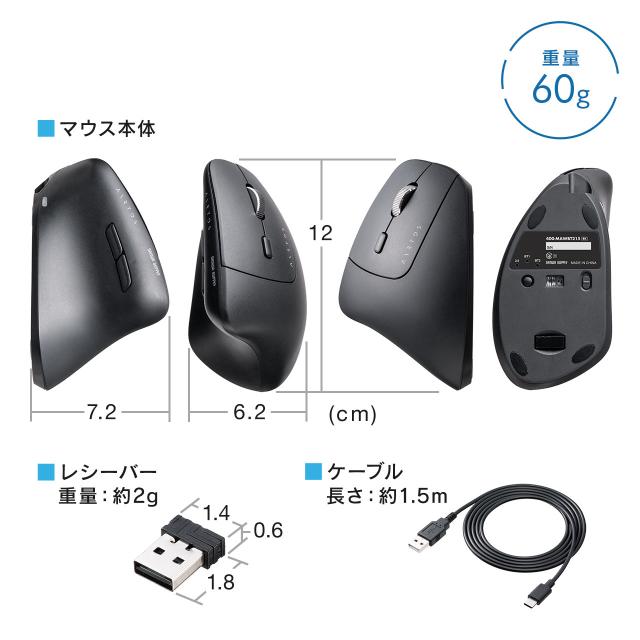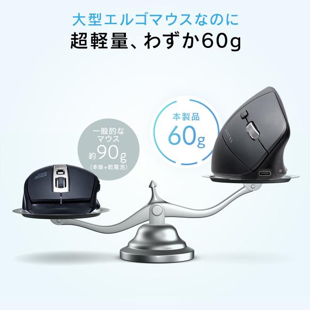 ●わずか60gの軽量エルゴノミクスマウスです。●自然な角度でマウスを握り、手首の負担を軽減するエルゴノミクス形状です。