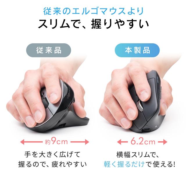 ⇒ご購入の前にご確認下さい重量がわずか60gの軽量エルゴノミクスマウス。マウスがスリムで握りやすく、手首をひねらずに操作ができるため、長時間使用しても疲れにくい形状。【WEB限定商品】