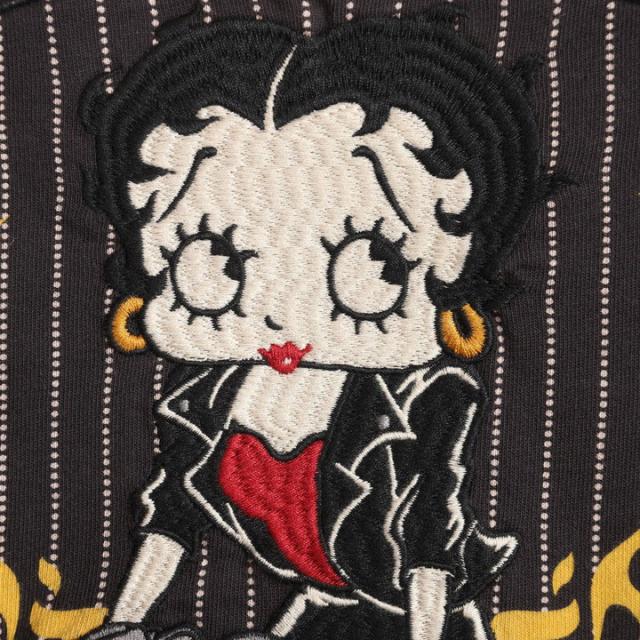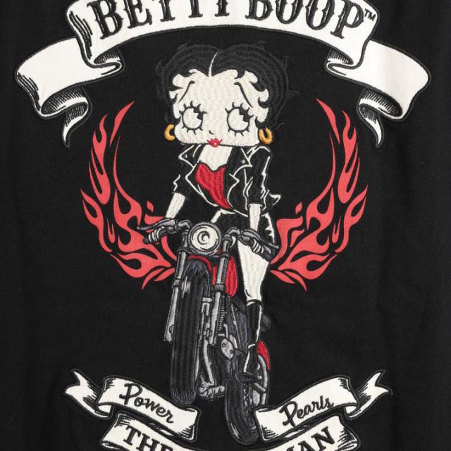 フロント左胸、バックのベティ&バイクが刺繍!…上下のリボンロゴはツイル刺繍仕上げ♪