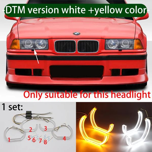 スイッチバック DTM スタイル ライト LED エンジェルアイ デュアルカラー BMW E36 3 シリーズ ユーロヘッドライト付き 1992-1998