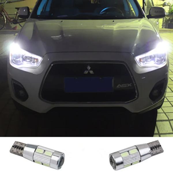 2 × T10 LED W5W 車 LED オートランプ 12V 電球プロジェクターレンズ付き三菱 ASX ランサー 9 10 パジェロアウトランダー l200 2013
