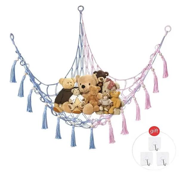 ぬいぐるみのおもちゃのハンモック、子供のおもちゃの収納オーガナイザー、省スペース、子供部屋を飾るためのカラフルな綿ロープネット