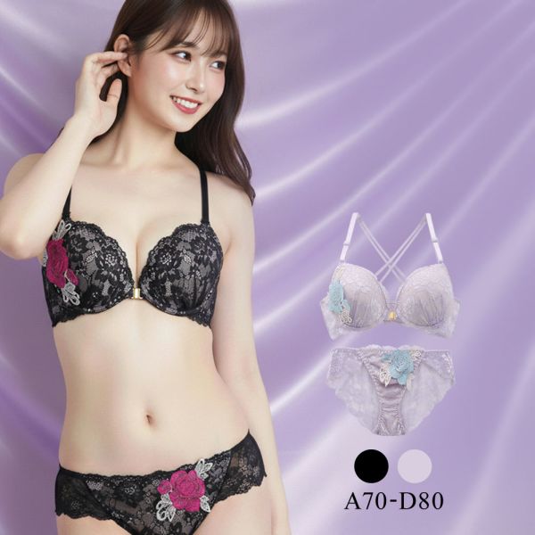 ラブジェリー 背中魅せ レーシーローズ フロントホック ブラセット ABCD 盛り胸 谷間ブラ バストアップ ブラジャー ショーツ セット Love gerie
