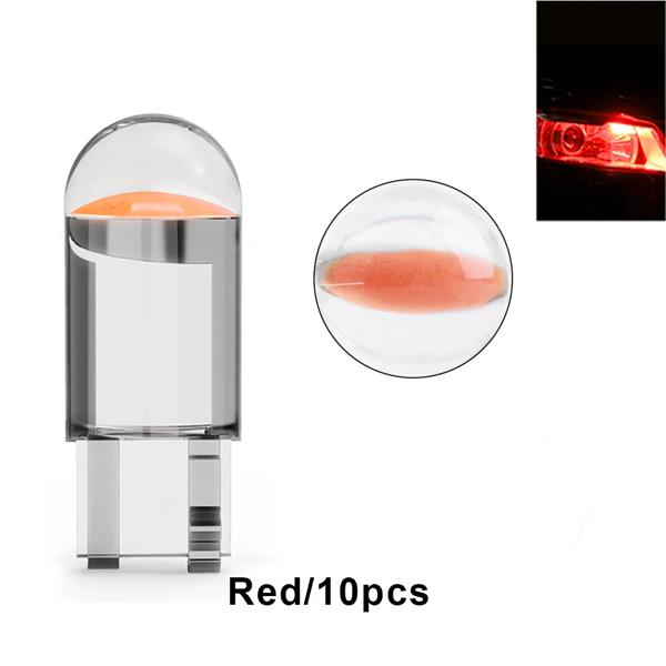 10 ピース/パック W5W 194 T10 ガラスハウジング Cob LED 車の電球 3000 K 6000 K 白青赤ウェッジナンバープレートランプドームライト