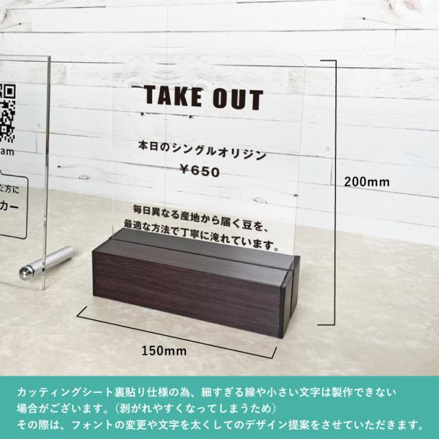 案内サイン メニューサイン アクリルテーブルサイン H200×W150mm / 開店祝い 開業祝い 開院祝い 受付 table-acryl-cut
