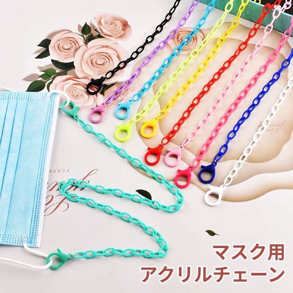 マスク 老眼鏡 アクリル 樹脂 プラスチック カニカン付き ネックレス風 チェーン ストラップ 子供 落下防止 紛失防止 可愛い オシャレ アクセサリー シンプル 金属アレルギー なくさない ミルキーカラー サングラス