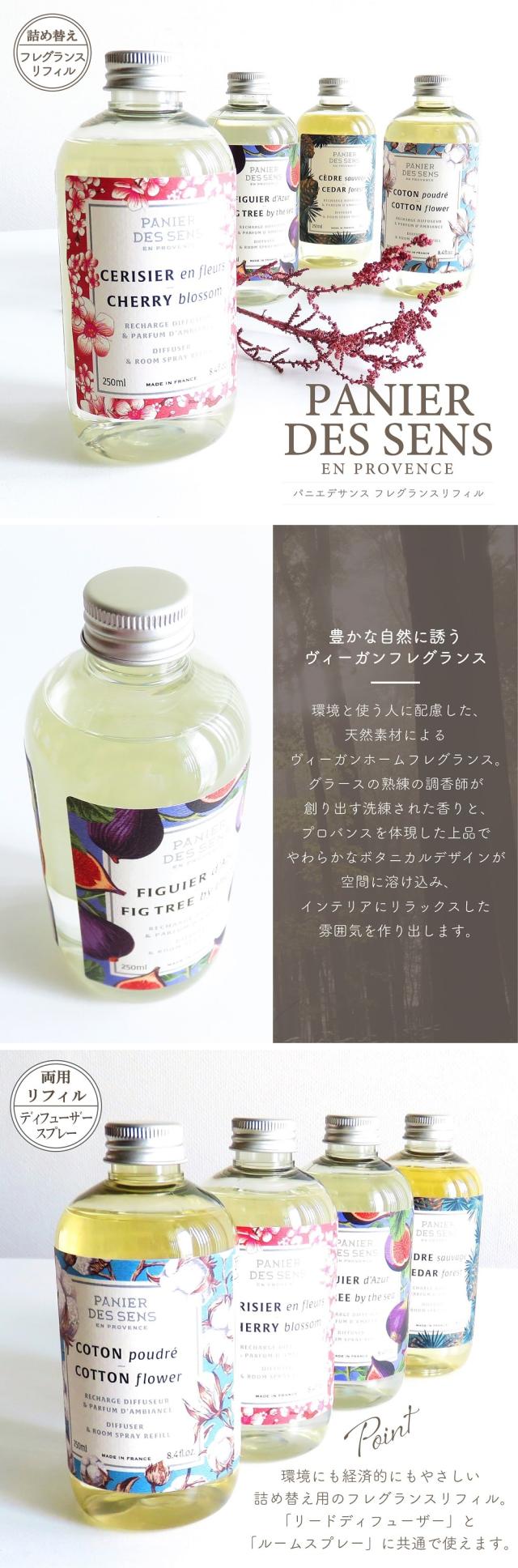 リフィル 詰め替え パニエデサンス フレグランスオイルリフィル 250ml ディフューザー・ルームスプレー両用 フランス産 天然由来90% 植物性アルコール使用 ヴィーガンフレンドリー 再生プラスチック使用 アロマ スティック別売り