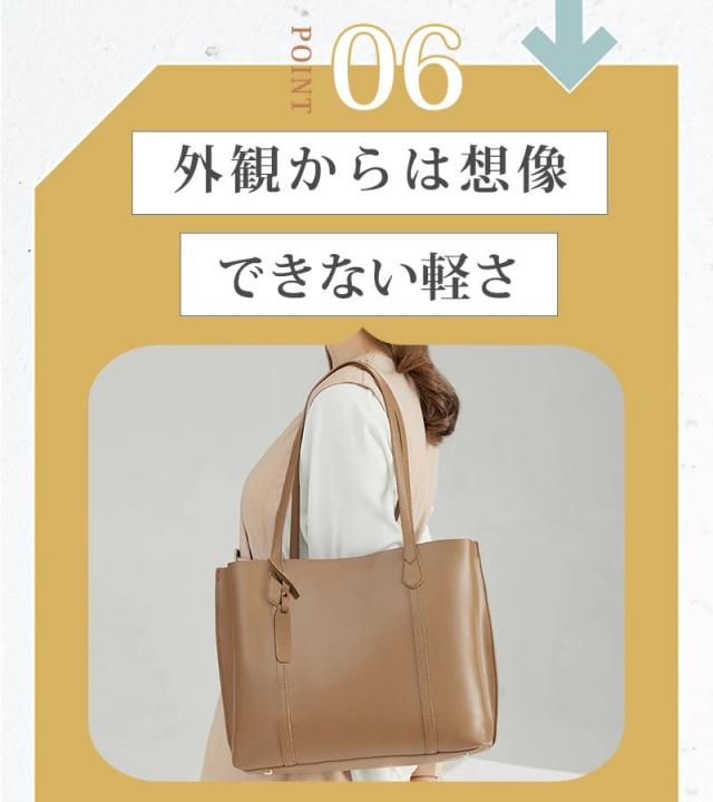 ●【外観からは想像できない軽さ】持った瞬間「え、軽い!」とおもわず声が出てしまう軽さで、一般的な同サイズの本革バッグと比べて半分以下の重量です。