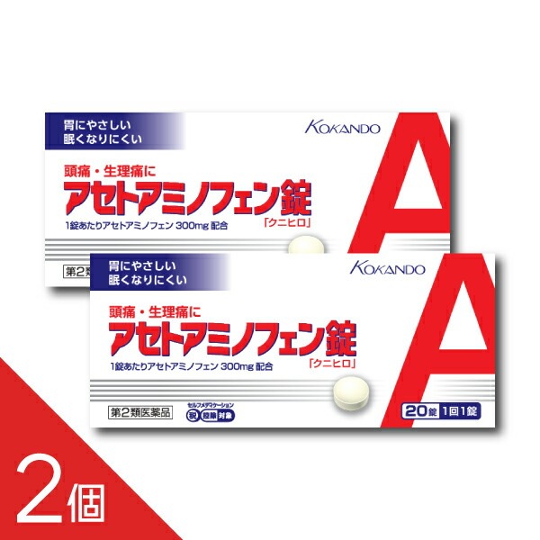 【2個】『アセトアミノフェン錠 20錠』クニヒロ 急な発熱 解熱鎮痛剤 インフルエンザ 頭痛 生理痛に アセトアミノフェン配合 風邪薬【第2類医薬品】