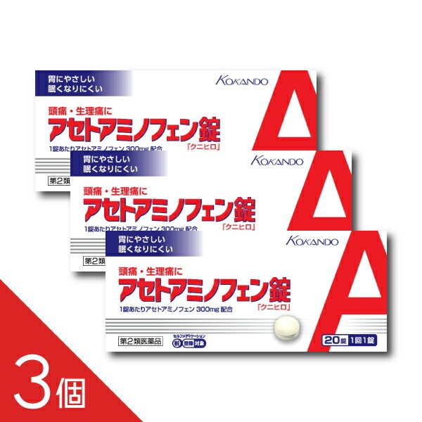 【3個】『アセトアミノフェン錠 20錠』クニヒロ 急な発熱 解熱鎮痛剤 インフルエンザ 頭痛 生理痛に アセトアミノフェン配合 風邪薬【第2類医薬品】