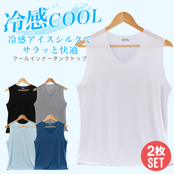 タンクトップ メンズ 冷感 2枚セット 接触冷感 夏 半袖 インナー 肌着 吸汗 速乾 ドライ 送料無料
