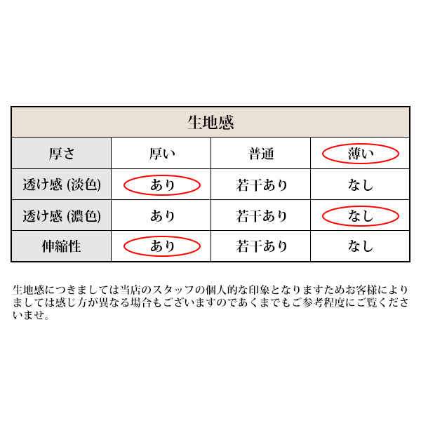 | [備考] | 掲載の画像はお使いのモニター環境により実際の色や素材感とは異なって見える場合がございます。 生産過程においてサイズに若干の誤差が生じる場合がございます。 着用に問題のない糸のほつれがある商品や一度でも着用をされた商品の返品・交換はお受けできません。 あらかじめご了承下さいませ。 またその他の返品・交換につきましては当社規定でご対応させていただきます。 |