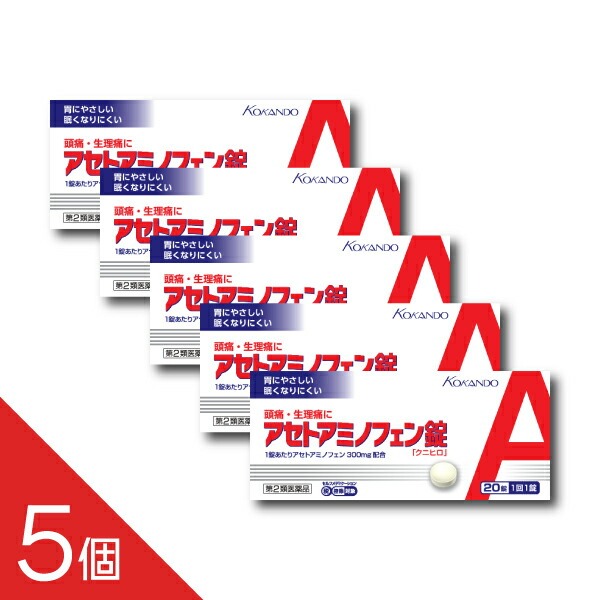 【5個】『アセトアミノフェン錠 20錠』クニヒロ 急な発熱 解熱鎮痛剤 インフルエンザ 頭痛 生理痛に アセトアミノフェン配合 風邪薬【第2類医薬品】