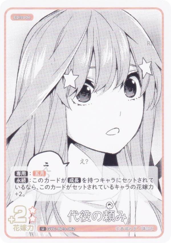 五等分の花嫁カードゲーム GYC-BP3-062 代役の頼み (U アンコモン) ブースターパック vol.3 いつもどこでも