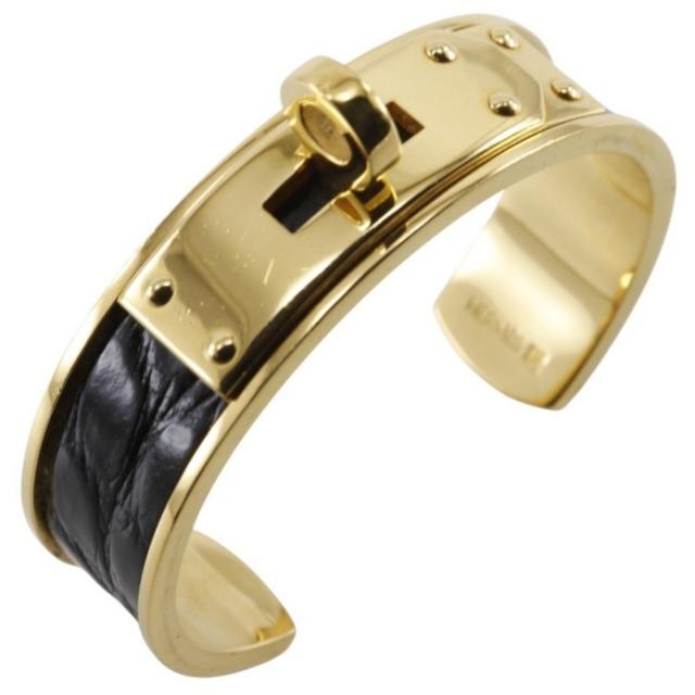 HERMES エルメス ケリー ブレスレット 金メッキ 黒 バングル 39.2g レディース 【中古】