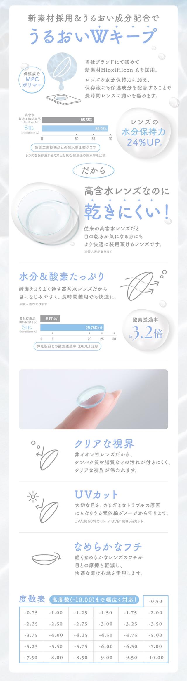 | 度数 | -0.50〜-6.00(0.25ステップ) -6.50〜-10.00(0.50ステップ) |