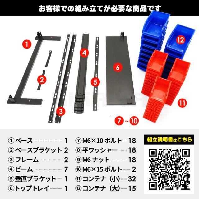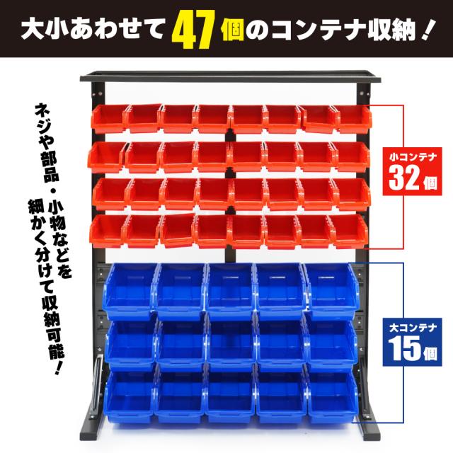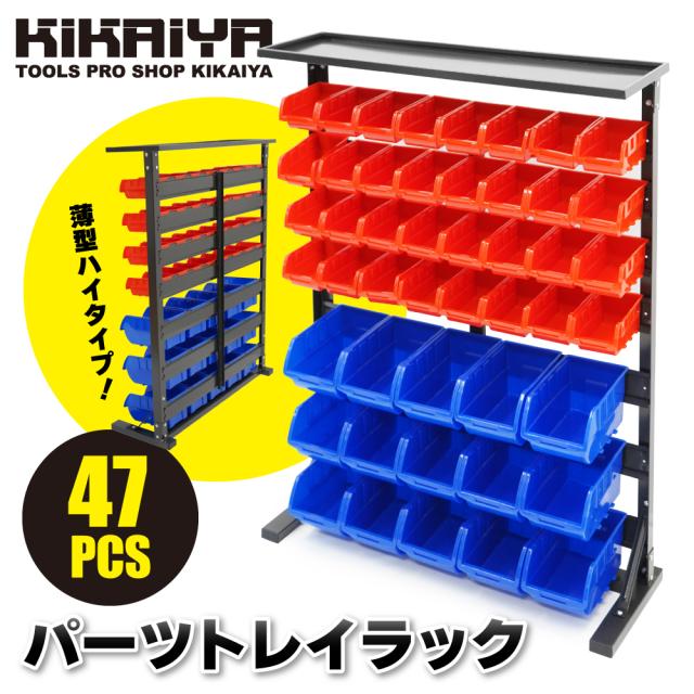 パーツトレイラック 47個 コンテナラック パーツトレイ パーツラック 部品棚 収納棚 パーツ整理 5S 作業台 整理 KIKAIYA