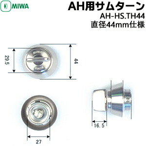 MIWA AH用サムターン AH-HS.TH44 直径44mm仕様 シルバー色 扉の厚み33〜41mm 42〜49mm 50〜57mm MIWA AH用サムターン 美和ロック 鍵 交換 取替 室内 ツマミ サムターン