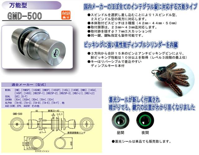 5個セット GMD-500 送料無料 鍵 ノブ AGENT GMD-500 万能取替玉座 (ノブ) エージェントGMD-500 ディンプルキー5本付 ドアノブ 鍵付き 鍵 シリンダー 交換ドアノブ