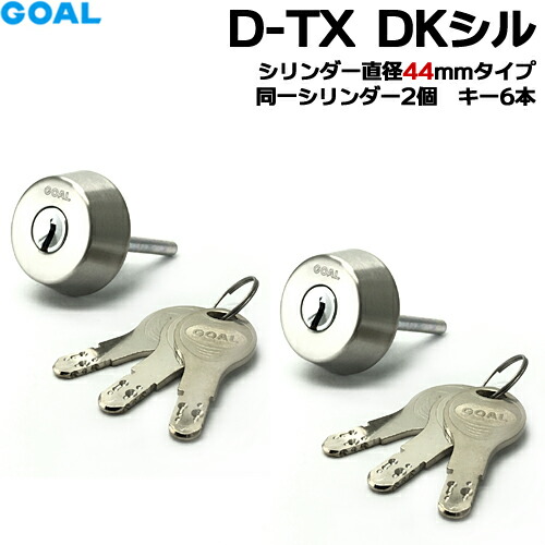 GOAL 鍵 シリンダー 交換 ゴール 2個同一 シリンダー直径44mmタイプD-TX DKシル各種寸法GOAL TLK SK等 D9シリンダー シリンダー錠 キー6本付 シルバー色