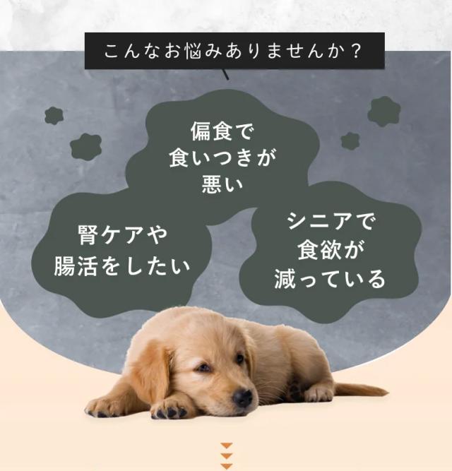 リンの量を抑え、カラダシルクを配合することで腎臓の健康をサポートしながら、愛犬が美味しく楽しんで食べられるように設計しました。