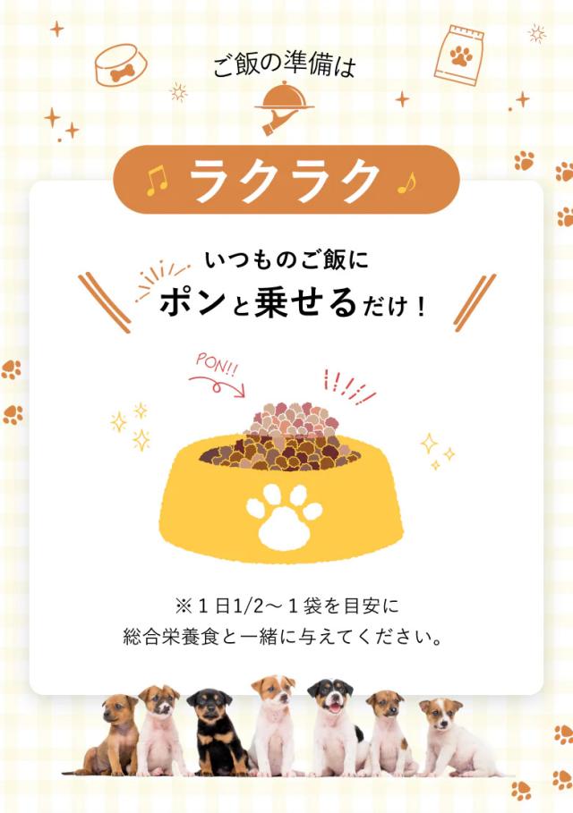 ・1日1/2〜1袋を目安に総合栄養食と一緒に与えてください。