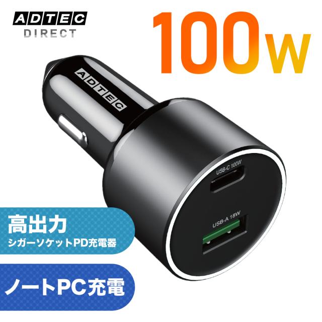 車載充電器 100W PD USB-C 高出力 ノートPC MacBook対応 急速充電 12V 24V対応 USB-A シガーソケット 営業車 長距離ドライバー 日本メーカー