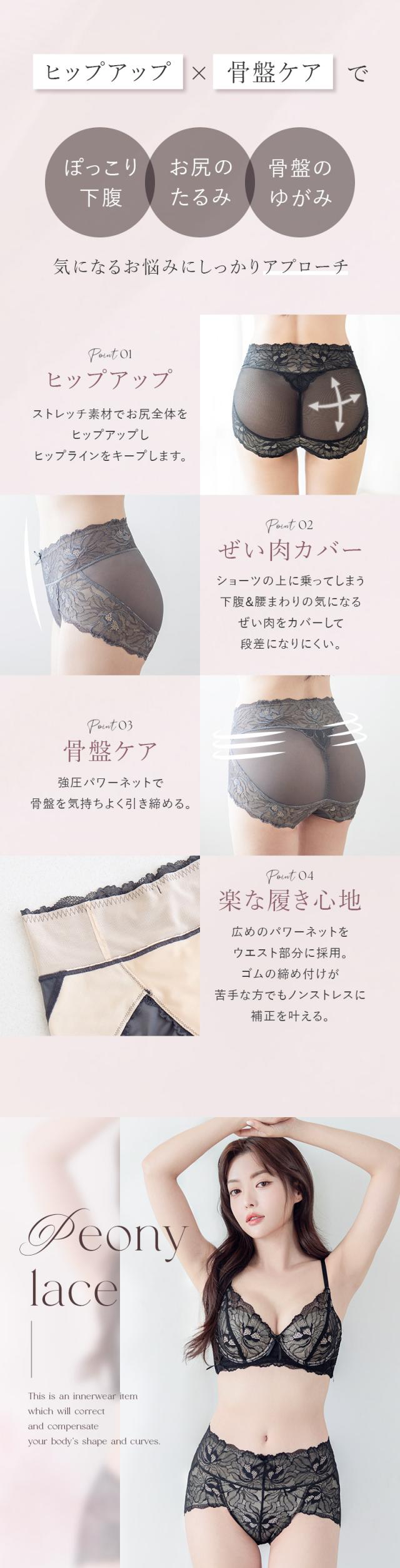 ピオニーレース骨盤ガードルショーツ【ハイウエスト丈】ガードル 補正 補正ショーツ 骨盤矯正 ヒップアップ 骨盤ショーツ 骨盤ケア 着やせ 着痩せ 細見え 着圧 ショーツ 可愛い ブラジャーお揃い レディース ツーハッチ