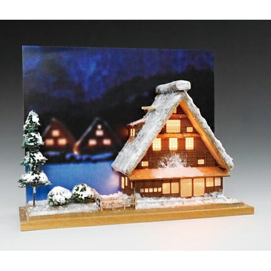 商品説明冬景色に包まれる合掌造りを中央でカットした形で再現しました。背面の壁には雪景色の壁紙、雪の情景を表現できるよう、スノーパウダー・樹木(針葉樹1本・ツゲ2本)もセットされています。灯りを点灯すると、あたたかな雰囲気が広がります。場所を取らない模型ですのでどこにでも置けます。壁かけにアレンジしてもOK。電池ボックス/木製カバー付き、単3電池2本使用(電池は付属していません)完成サイズ:全幅190mm 奥行64mm 全高145mm製作参考時間:6時間難易度:★☆☆☆☆販売元:株式会社ウッディジョー※サイズ・重量は約の表示で誤差が生じる場合があります。※品質向上のため予告無く仕様を変更する場合がございます。※商品画像の色合いは、画像処理上 若干異なる場合がございます。予めご了承下さい。