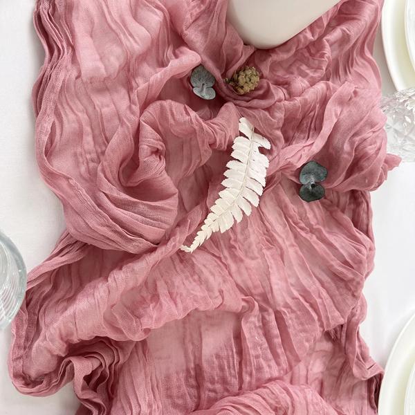 ウェディングピンクガーゼテーブルランナー半薄手のヴィンテージ寒冷紗テーブルセッティングダイニングパーティークリスマス宴会アーチケーキ装飾