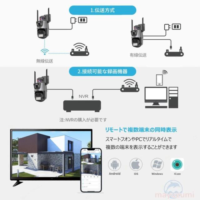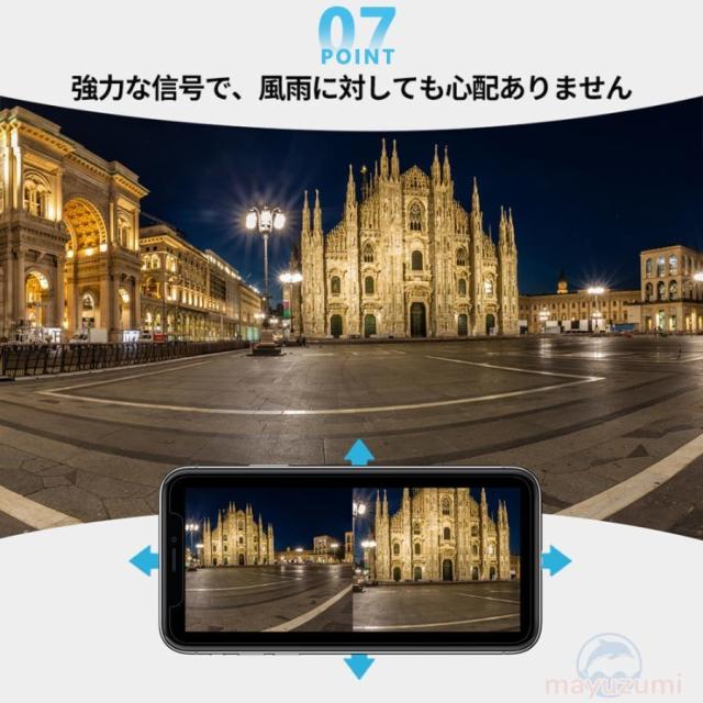 証拠映像鮮明に残せる800万画素!外出先や海外でもスマホを経由して映像の鑑賞、再生、設定ができます。携帯デバイス数台同時に鑑賞できます。