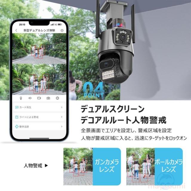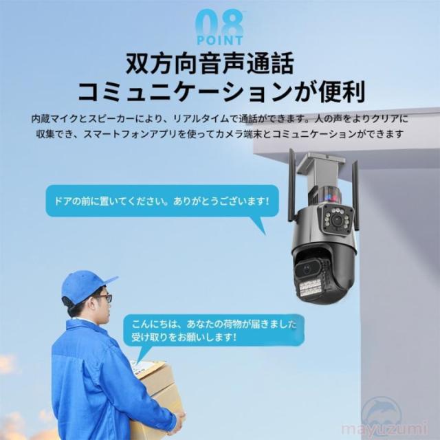【期間限定】防犯カメラ 屋外 家庭用 wifi 800万画素 屋外カメラ パンチルト モーショントラッキング IP66 工事不要 防水防塵 音声通話 監視カメラ 高性能 人感録画 新生活