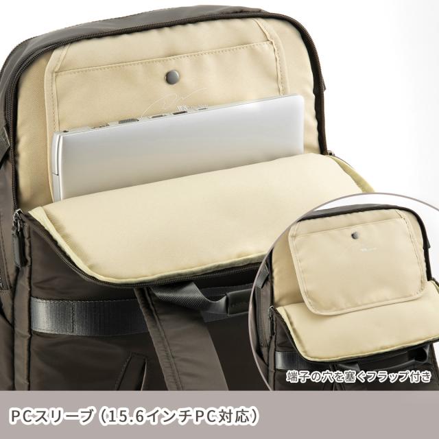 | ブランド |W&.Day/Night - ダブルアンドデイナイト シリーズ |Pokkes / ポッケス2 スリムリュック 品番 |15278 形状 |ビジネスリュック |デイパック 外寸 |W320×H450×D180[mm] 重量 |約 930g(本体のみ) 収納サイズ |B4ファイル / 15.6inchノートPC 容量 |約 25L 素材 |本体:ナイロンツイル 撥水加工 / PU加工 |付属:PU合皮 生産国 |中国 付属 |ポシェット×1 |外寸:W170×H210[mm] 機能 |2気室 |B4ファイル収納 |PC収納(15.6inch) |ティッシュポケット |シースルーポケット |他ポケット多数 |Napping pl.(スマートフォンポケット) |Me Strap(キーストラップ) |セットアップベルト ATTENTION ●サイズはメーカー公称値(許容される最小値と最大値の中心値)です。 ●製品改良のため予告なく仕様変更する場合がございますのでご了承下さい。 |